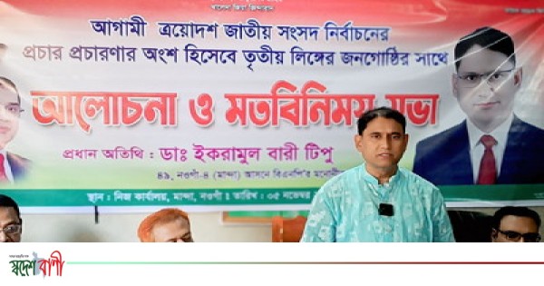আগামী ত্রয়োদশ জাতীয় সংসদ নির্বাচনকে সামনে রেখে তৃতীয় লিঙ্গের জনগোষ্ঠীর সঙ্গে আলোচনা ও মতবিনিময় সভা অনুষ্ঠিত হয়েছে।