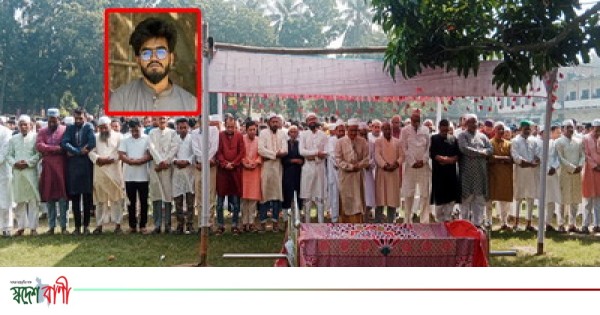 জানাযার নামাজে ইমামতি করেন নিহতের দাদা আব্দুর রহমান এছা। জানাযায় দাড়িয়ে স্বজনের সাথে অঝরে কেঁদেছেন অনেকেই। জানাযায় অংশ নেন- রাজনৈতিক, সামাজিক সংগঠন,শিক্ষক-শিক্ষার্থী বন্ধু বান্ধব সহ শ্রেণী পেশার হাজারো মানুষ।