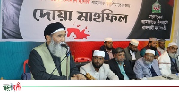 ইনকিলাব মঞ্চের মুখপাত্র ওসমান হাদির রুহের মাগফিরাত কামনায় বাংলাদেশ জামায়াতে ইসলামী রাজশাহী মহানগরীর উদ্যোগে দোয়া মাহফিল অনুষ্ঠিত হয়েছে। শনিবার বিকেল চারটার দিকে রাজশাহী নগরীর একটি কনফারেন্স হলে এ দোয়া মাহফিল অনুষ্ঠিত হয়।