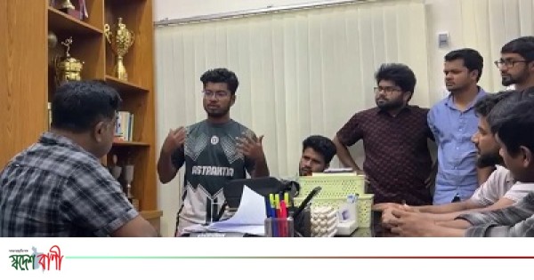 একই কক্ষের আরেক শিক্ষার্থী সন্দীপ কুমার শীল বলেন, ‘দরজা খোলার পর দেখি তারা মোবাইলে ভিডিও চালু রেখেছে। তারা বারবার বলছিল রুমে মেয়ে আছে এবং তল্লাশি করবে। পরে জোর করে রুমে ঢোকে।’