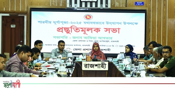 এতে সভাপতিত্ব করেন রাজশাহীর জেলা প্রশাসক আফিয়া আখতার। তিনি বলেন,“শারদীয় দুর্গোৎসব সনাতন ধর্মাবলম্বীদের প্রাণের উৎসব। পূজাকে ঘিরে প্রতিটি মণ্ডপে প্রতিমা তৈরির কাজ চলছে জোরেশোরে। পূজা যেন শান্তিপূর্ণভাবে সম্পন্ন হয়, সে জন্য জেলা ও উপজেলা প্রশাসনের পক্ষ থেকে সব ধরনের ব্যবস্থা নেওয়া হয়েছে।”