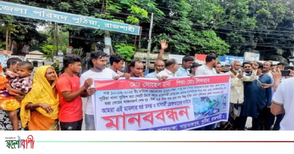 জানা গেছে, মানববন্ধনে পুঠিয়া থানাধীন জরমডাঙ্গা, কান্দ্রা ও শাহাবাজপুর এলাকার কয়েকশ বিভিন্ন শ্রেণি-পেশার মানুষ অংশ নেন। তারা মহাসড়ক অবরোধ করে প্রায় ২৫ মিনিট অবস্থান নেয়, ফলে যান চলাচল সাময়িকভাবে বন্ধ থাকে। মানববন্ধনে নিহত সোহেলের পিতা নিল্লাতাব আলী, মাহফুজুর রহমান বাবলু, হাফেজ আঃ রহমান, হাফেজ আশরাফুল ইসলাম প্রমুখ বক্তব্য রাখেন।