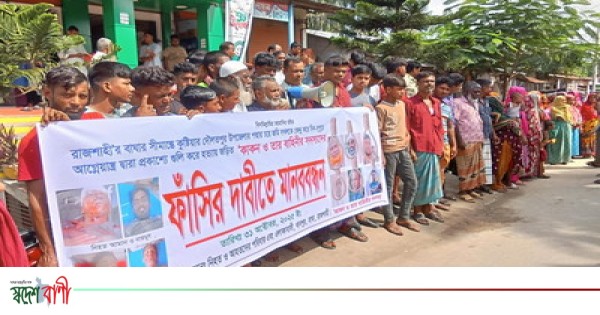 শুক্রবার(৩১-১০-২০২৫)নিহত-আহতের পরিবার ও এলাবাসীবাসীর ব্যানারে বাঘা উপজেলার গড়গড়ি ইউনিয়নের খানপুর বাজারে এ মানববন্ধন কর্মসূচি পালন করা হয়। এতে আমান মন্ডল, নাজমুল মন্ডলকে গুলি করে হত্যাসহ মুনতাজ মন্ডল ও রাবিক হোসেনকে আহত করার প্রতিবাদ এবং দোষীদের বিচার দাবিতে বিভিন্ন শ্রেণি-পেশার নারি-পুরুষ অংশ নেন।