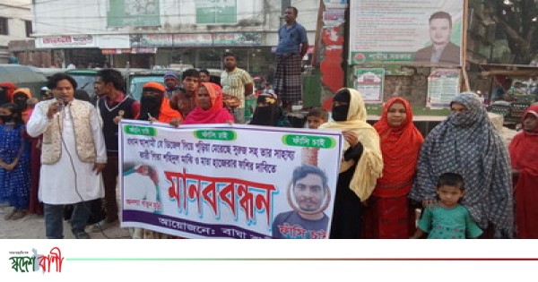 আমাদের দাবি একটাই গৃহবধু অনন্যা খাতুনকে যারা শরীরে ডিজেল ঢেলে আগুনে পুড়িয়ে হত্যা করেছে তাদের ফাঁসি চাই। অনন্যার স্বামী সুরুজ সহ তার পিতা-মাতা ফাঁসির দাবিতে গৃহবধুর পরিবারসহ এলাকাবাসীর ব্যানারে অনুষ্ঠিত মানববন্ধনে দাড়িয়ে হত্যাকান্ডের মামলার আসামীদের ফাঁসির দাবি করা হয়। সোমবার (২৪-১১-২০২৫) বিকেল ৫টায় বাঘা বাসস্ট্যান্ড এলাকায় মানববন্ধন অনুষ্ঠিত হয়। বক্তব্য রাখেন নিহত গৃহবধু অনন্যার খালা সপুরা,সহোদরভাই মিঠু আলী,মামাতো ভাই বাউল শিল্পী নূর ইসলাম। পুড়িয়ে হত্যা মামলার আসামী সুরুজ বাঘা পৌরসভার চক নারায়ণপুর গ্রামের শহিদুল-হাজেরা দম্পতির ছেলে। তার পিতা মাতাকেও মামলায় আসামী করা হয়েছে।