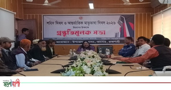 শহিদ দিবস ও আন্তর্জাতিক মাতৃভাষা দিবস উৎযাপন উপলক্ষে রাজশাহীর তানোরে প্রস্তুতি সভা অনুষ্ঠিত হয়েছে। বুধবার সকালের দিকে উপজেলা প্রশাসনের সম্মেলন কক্ষে অনুষ্ঠিত হয় প্রস্তুতি সভা। প্রস্তুতি সভায় উপজেলা নির্বাহী অফিসার ইউএনও নাঈমা খান সভাপতিত্ব করেন।