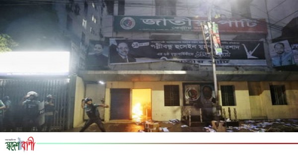 কাকরাইলে জাতীয় পার্টির কেন্দ্রীয় কার্যালয়ে হামলা ও অগ্নিসংযোগের ঘটনা ঘটেছে। শনিবার (৩০ আগস্ট) সন্ধ্যা সাড়ে ৬টার দিকে এ ঘটনা ঘটে।