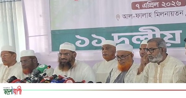 মঙ্গলবার (৭ এপ্রিল) দুপুরে জামায়াতের কেন্দ্রীয় কার্যালয় সংলগ্ন আল ফালাহ মিলনায়তনে এক সংবাদ সম্মেলনে ১১ দলীয় নির্বাচনি ঐক্যের পক্ষে এই কর্মসূচি ঘোষণা করেন বাংলাদেশ খেলাফত মজলিসের আমির মাওলানা মামুনুল হক।
