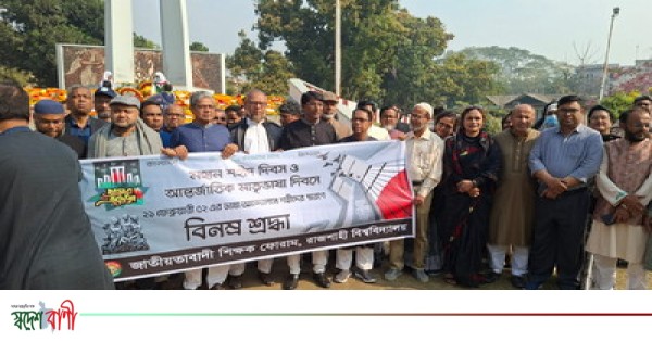 শহিদ দিবস এবং আন্তর্জাতিক মাতৃভাষা দিবসে ভাষা শহিদদের শ্রদ্ধা জানিয়েছে জাতীয়তাবাদী শিক্ষক ফোরাম রাজশাহী বিশ্ববিদ্যালয়। শনিবার (২১ ফেব্রুয়ারি) সকালে ফোরামের নেতৃবৃন্দ বিশ্ববিদ্যালয়ের কেন্দ্রীয় শহিদ মিনারে পুষ্পার্ঘ্য অর্পণের মাধ্যমে এ শ্রদ্ধা জানান।