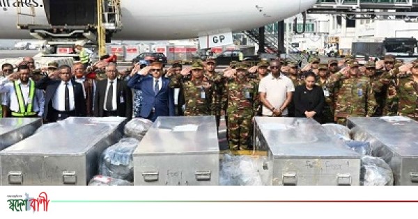 আইএসপিআর জানায়, গত ১৩ ডিসেম্বর সুদানের আবেই এলাকায় জাতিসংঘ শান্তিরক্ষা মিশনের একটি ঘাঁটিতে সংঘটিত বর্বরোচিত সন্ত্রাসী ড্রোন হামলার ঘটনায় শাহাদাৎ বরণকারী ৬ জন শান্তিরক্ষীর মরদেহ শনিবার হযরত শাহজালাল আন্তর্জাতিক বিমানবন্দরে এমিরেটস এয়ারলাইন্সের একটি বিমানে দেশে প্রত্যাবর্তন করে।