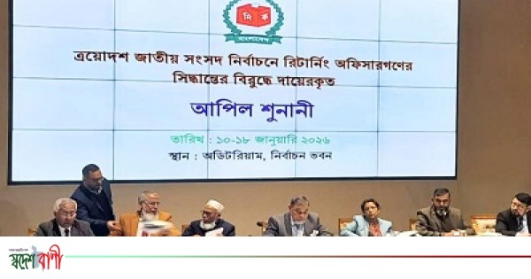 নির্বাচন কমিশনে (ইসি) শুরু হয়েছে ত্রয়োদশ জাতীয় সংসদ নির্বাচনে মনোনয়নপত্র বাছাইয়ে রিটার্নিং কর্মকর্তাদের সিদ্ধান্তের বিরুদ্ধে করা আপিলের শুনানি। সোমবার (১২ জানুয়ারি) সকাল ১০টায় দ্বিতীয় দিনের আপিল শুনানি শুরু হয়েছে। যা চলবে বিকেল ৫টা পর্যন্ত।